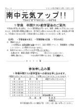 元気アップ通信2号です。 1学期中間テスト前学習会の時間を載せています。
