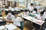今日は一番参加人数も多く、机が足りないようです。 2年生が1年生に勉強を教えたり...