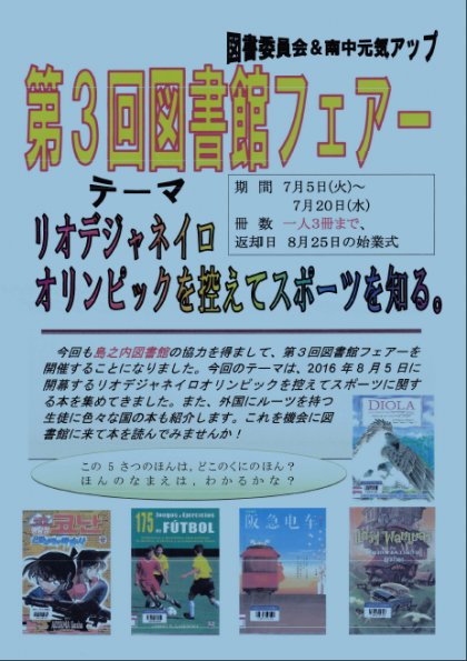第3回図書館フェアーを開催します。今回も島之内図書館の協力を得まし て、第3回図...