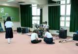 英語の先生とC-NETの先生に指導していただきながら、3年生の2人が英語のスピー...