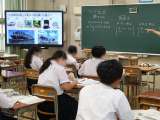 2時間目、1年2組は英語です。 モニターにでる英単語の意味と発音を繰り返し覚えて...