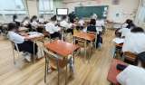 4時間目、1年1組は音楽です。 合唱しています。 合唱曲の歌詞を覚えてくるという...