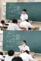 1時間目、3年2組は数学です。 高校入試によく出る証明問題を学習しています。