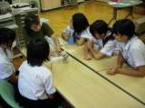 今日の調理実習では、いわしのかば焼きをつくりました。 スクリーンに映した動画を見...