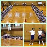 生徒会企画『南中ギネス』の招集練習 と説明。生徒会役員の指示で行われました。