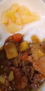 今日のメニューは、ビーフカレーライス(米粉)、一口ヒレカツ(米粉)、 きゅうり...