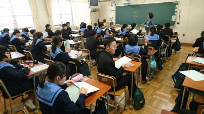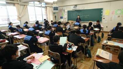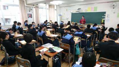 2年生は、担任の先生方が教室前廊下で、生徒一人ずつ面談する間、他の生徒は教室内で、副担任の先生方の指導の元、「自己紹介カード」や「家庭訪問調査票」「学級旗デザイン」を書きました。