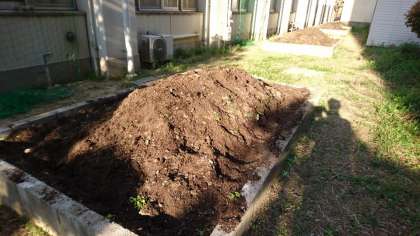 在校生の部員と一緒に、裏庭の畑で、雑草を抜いたり、ウネを作ったりしました。