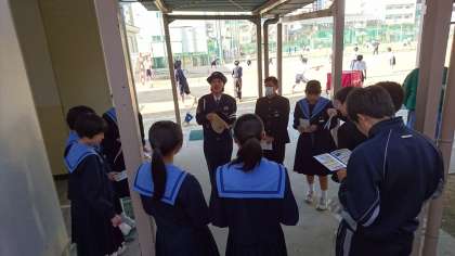 作業後には、区役所職員に同行されていた南警察署員から、交通安全についての話(自転車の安全な乗り方等)も聞くことができました。(写真下)