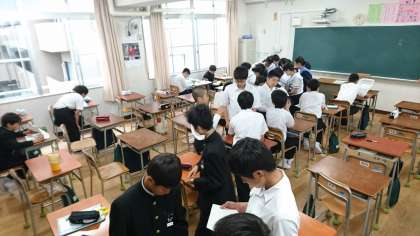 2年生は、4/24(水)4限目「総合の時間」に引き続き、体育委員や学級委員が中心となり、各クラス毎に体育大会の出場種目や、学級旗、応援合戦について決めていました。