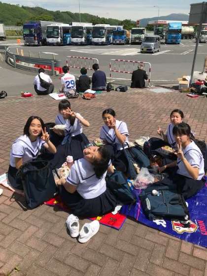 予定していた場所が別の学校団体がいくつかきており、残念ながら歩道わきになりました。