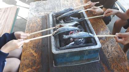 釣った魚は、その場でさばいて炭火焼きでいただきました。