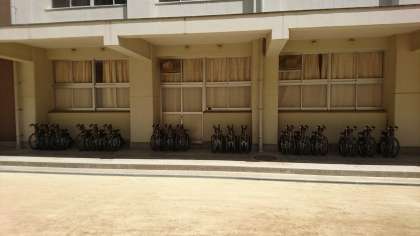 前々日のメンテナンスの際、本校備品15台のうち1台の片側タイヤが、虫ゴムの劣化により空気が抜けているトラブルが発生しました。