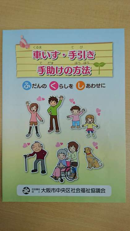 なお、今回の車椅子体験学習は、中央区社会福祉協議会「もも」より提供のパンフレット「車いす・手引き、手助けの方法」(写真下)を参考資料としています。