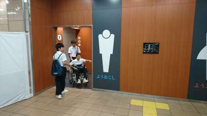 その他にも、大阪メトロの各駅では、コンコース内のスロープや身障者用トイレ等、バリアフリーが整備されていることを確認しました。(写真中・下)