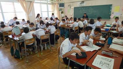 班毎に意見をまとめた後、黒板に図解しながら発表している班もありました。(写真下)