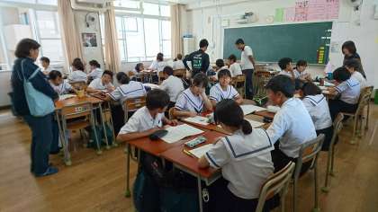 5/24(金)6限目、2年生は前日の車椅子体験の事後学習(まとめ)を、各クラスで行いました。