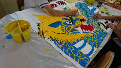 来月初旬の体育大会に向けて、2年生有志の生徒による、放課後の学級応援旗作成が進んでいます。
