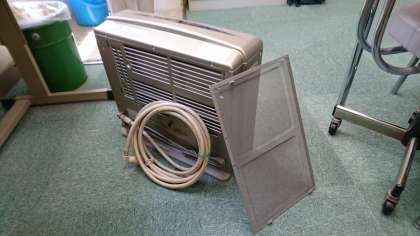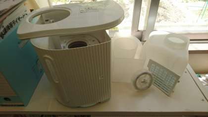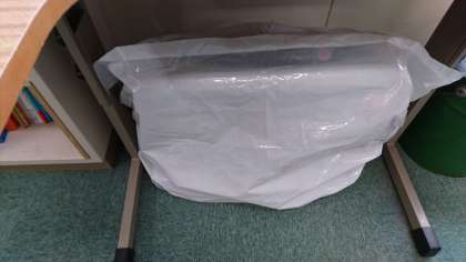 青空学級では、冬の寒い間使用していたストーブや加湿器をオーバーホールし、ビニール袋を被せました。