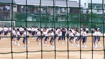 5、6時間目、運動場で体育大会応援練習がありました。各クラス今の出来栄えを見ることができるので、楽しみがあり大いに盛り上がりました。あさっての本番に向けて各クラス最終点検です。いよいよ明日、午前中が予行、午後が準備となりました。
