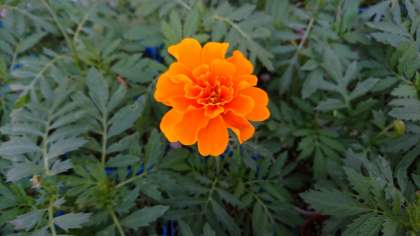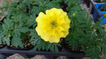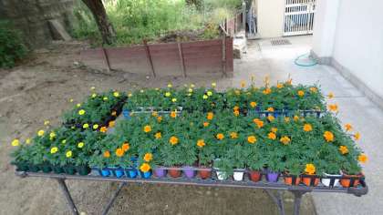 4月、中央区緑化事業の一環で、生徒会と園芸部が一緒に種まきをしたマリーゴールドの花が咲き始めました。