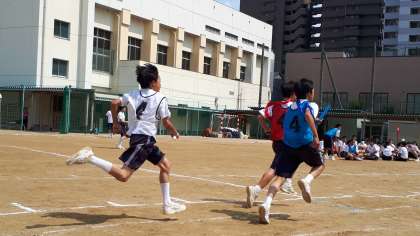 3年生の学年種目であるムカデ競走では、チームが呼吸をあわせ、テンポをうまく掴んで一気に追い上げる一幕もありました。