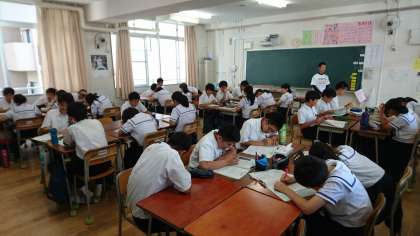 その後、各教室に戻り、DVDの感想と今回2回目の平和学習で学んだ事を、まとめました。(写真右)