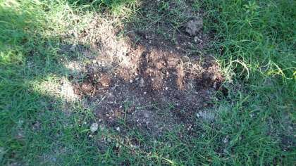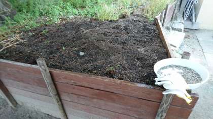 また、フェニックス下の花壇、裏庭にもまきました。(写真中・右)