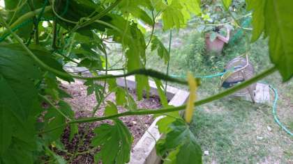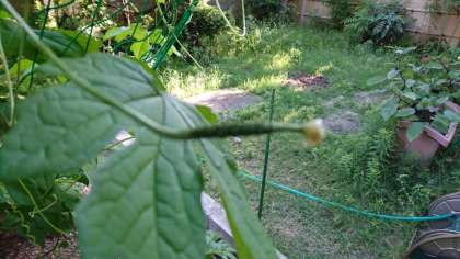 4月下旬に苗植えしたゴーヤが、小さな実を付け始めました。
