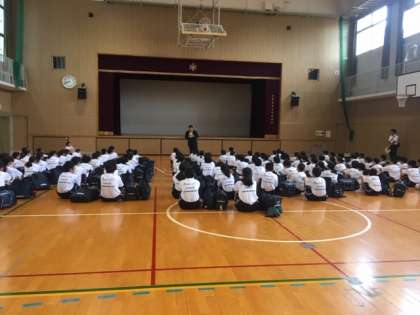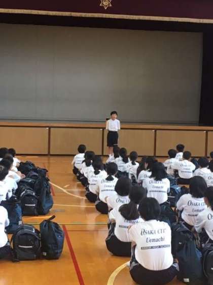 校長先生のお話し、実行委員長からのあいさつ、諸注意の後バスに乗り込みます。