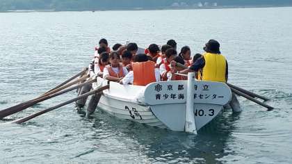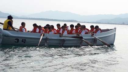 櫂を漕ぐのは難しいです。しかも、みんなとタイミングを合わせるのが大変です!