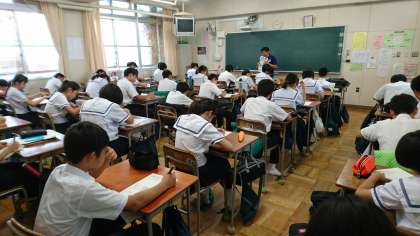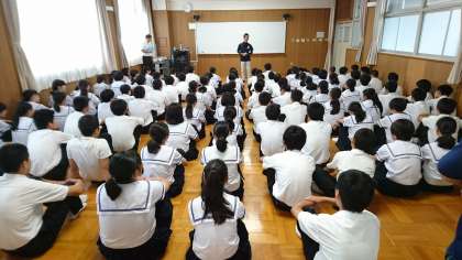 2年生は、まず多目的室に集合して、2学期の文化活動発表会での劇について説明がありました。