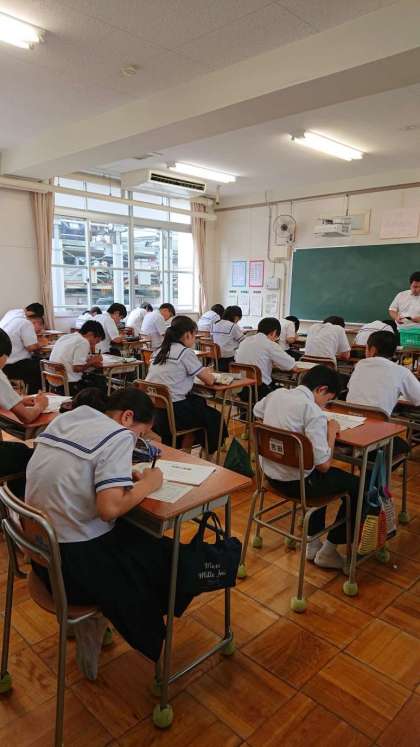 5限目の総合の時間は期末テストの反省、アンケート、今週のできごとなどの自分自身を振り返る時間でした。テストの方は、勉強のかいあって点数がアップした場合や、不本意にも点数が思ったほど取れなかった場合など、個人で事情が異なると思います。