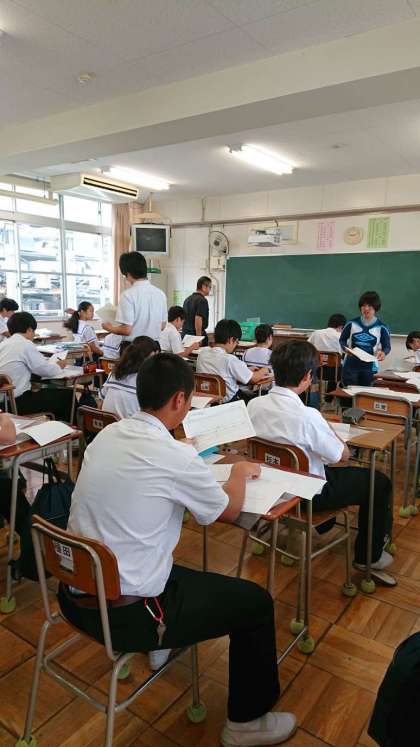 1限目の学活はアンケートと道徳学習の振り返りを行いました。計6回の学習分のプリントを返却してもらい最も印象が残っている授業や箇所を思い出して再度確認を行いました。どのクラスも真剣に学習し集中して振り返りを行うことができました。