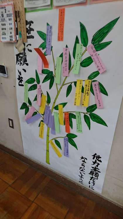2年生では、生徒それぞれのお願いを短冊に書いて、笹の絵に貼り付けているクラスがありました。