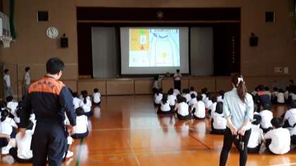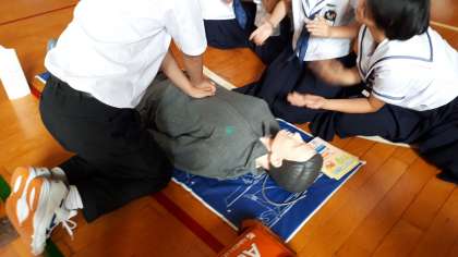 1年生は、3,4時間目、体育館で、AED講習を行いました。消防署の方が来られ、AEDの使用の仕方や、いざという時の対応の仕方などを学びました。状況を見て、落ち着いて行動することが大切です。