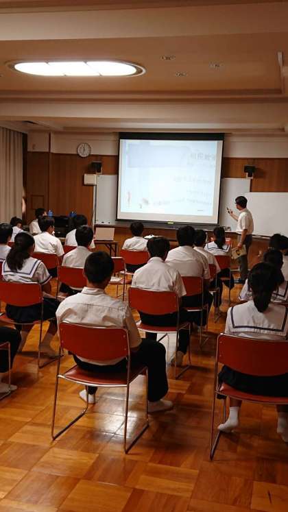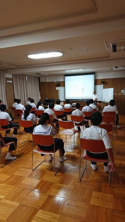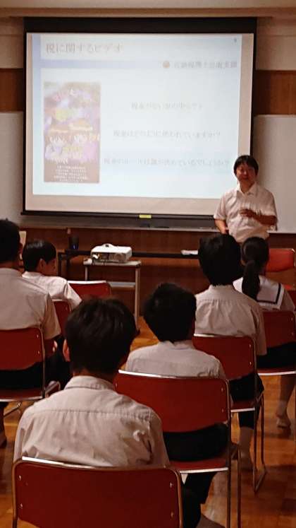 7月12日(金)の2限〜4限に3年生の社会科の授業で租税教室を行いました。税務署の職員の方と税理士の先生方に来ていただきわかりやすく税についての授業を行っていただきました。税金は何のためにあるのかということや、税金の種類、中学生で年間102万円もの費用が税金で賄われていることを学びました。税がなくなれば橋も、道も、学校も自分たちでお金を払って用意しないといけなくなるということを、わかりやすく仕立てたDVDで見ました。各クラスのカラーが税理士さんの質問の答え方に出ていました。1組は遠慮がちに答え、2組は周りの人と相談し、3組はワイワイと盛り上がっていました。