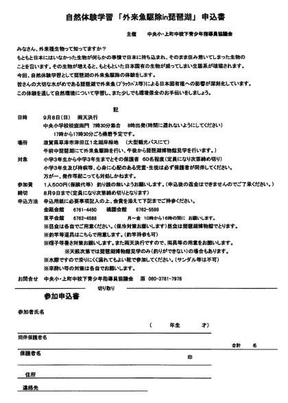 自然体験学習「外来魚駆除in琵琶湖」のおしらせ