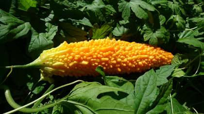 ゴーヤは、熟れ過ぎて黄色くなってしまいました。