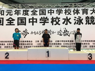 3年 黒川菜々実さんが飛込み(高飛込み)で全国中学校体育大会で3位になりました。