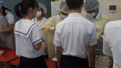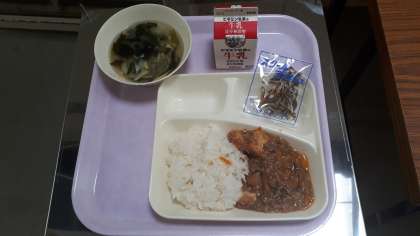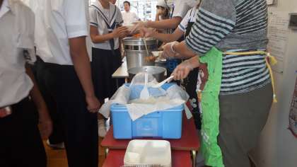 配膳も含めて、生徒のみなさんにとっては懐かしい光景かもしれません。スムーズにいくようにみんなで協力して楽しい給食にしたいですね。「いただきます。ごちそうさまでした」