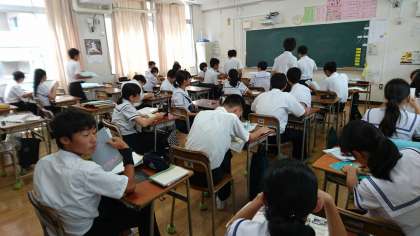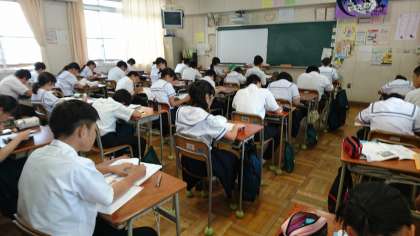教育相談以外の2年生は教室内で、来週金曜日9/6の復習テストに向けて、テスト勉強をしました。