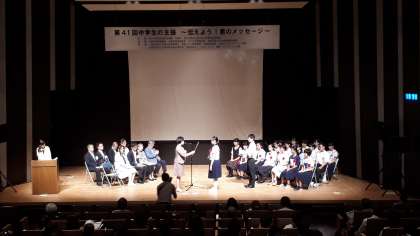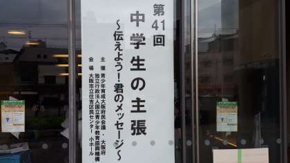 第41回中学生の主張、大阪府大会が、8月31日土曜日に住吉区民センターで開催されました。本校から、3年女子2名の生徒が、優良賞、佳作を受賞しました。