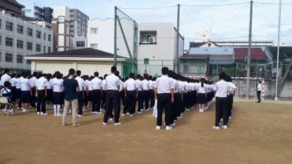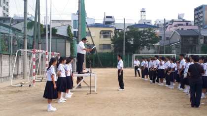 9月に入って最初の全校集会、運動場で行いました。たくさんの表彰がありました。