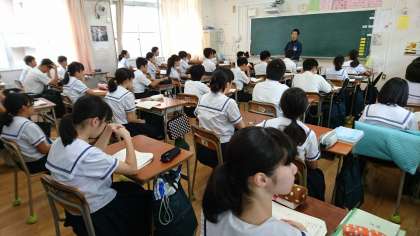 今回初めて、役者、背景・大道具・小道具、音響・照明、スライドの各係毎に別々の教室に分かれ、打ち合わせをしました。