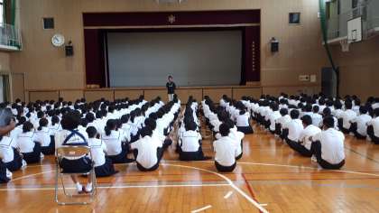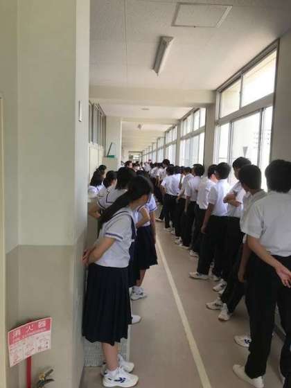 今日は、午前11時に大きな地震が発生、のちに、大津波警報が発令される想定のもと、大阪府民880万人訓練が行われました。本校でも、生徒全員が体育館に避難した後、大津波警報の発令とともに、より上の階への避難訓練を行いました。いざというとき、冷静に対応することが大切です。