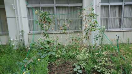 裏庭の畑のキュウリが、ほとんど枯れてしまいました。(写真左)