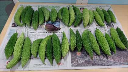 9月も中旬ですが、今日1日で大小合わせて、なんと32個も収穫しました。(写真右)