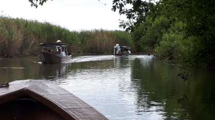 9月18日水曜日、PTAの社会見学がありました。朝から涼しいと感じる天気で秋の気配を感じることができました。近江八幡の水郷巡り(重要文化的景観選定第1号)を手こき舟で船頭さんの解説とともに体験しました。また、昼食は、近江牛、近江米をいただき、そのあとはショッピングを楽しみました。秋の気配ただよう近江路、心も安らぐ1日となりました。