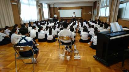その後、文化活動発表会2年生舞台発表での学年全体合唱曲の練習もしました。